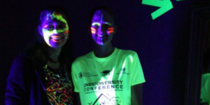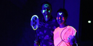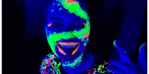 Der Selfie-Spiegel ermöglichte das Fotografieren der leuchtenden Outfits, während fluoreszierende Körpermalfarbe die Möglichkeit bot, sich in lebende Kunstwerke zu verwandeln.