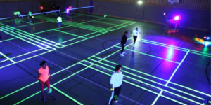 Sportspaß im Schwarzlicht: Federbälle und bunte Farben machten die Sporthalle des Schulzentrums am 2. Dezember zwischen 18 und 23 Uhr zu leuchtenden Badmintonfeldern.